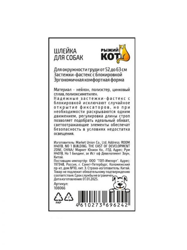 Покупка шлейки "Рыжий кот" позволит легко контролировать питомца и обеспечит долгий срок службы аксессуара.