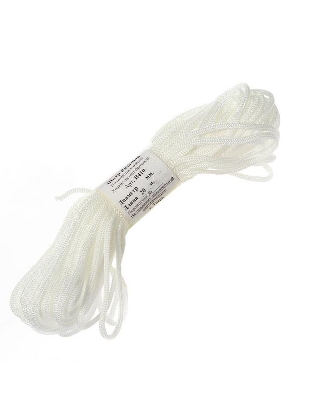 Шнур диаметр 4 мм, полипропилен, вязаный, 4В 360, белый, 20 м