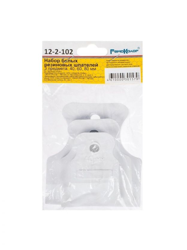 Шпатель 3 шт, резина, прямой, 40 мм, 60 мм, 80 мм, белый, РемоКолор, 12-2-102