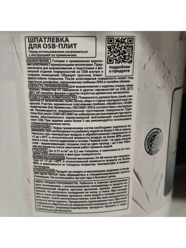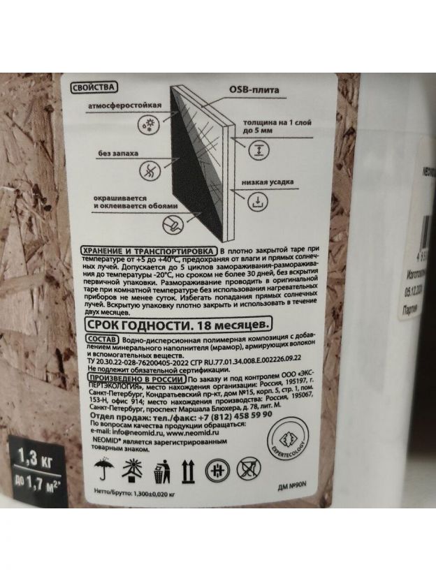 Шпатлевка Neomid, для плит OSB, готовая, для внутренних и наружных работ, 1.3 кг