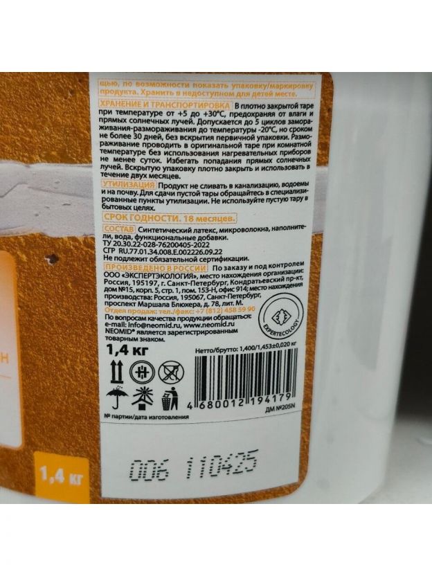 Шпатлевка Neomid, для выбоин и трещин, готовая, для внутренних и наружных работ, 1.4 кг