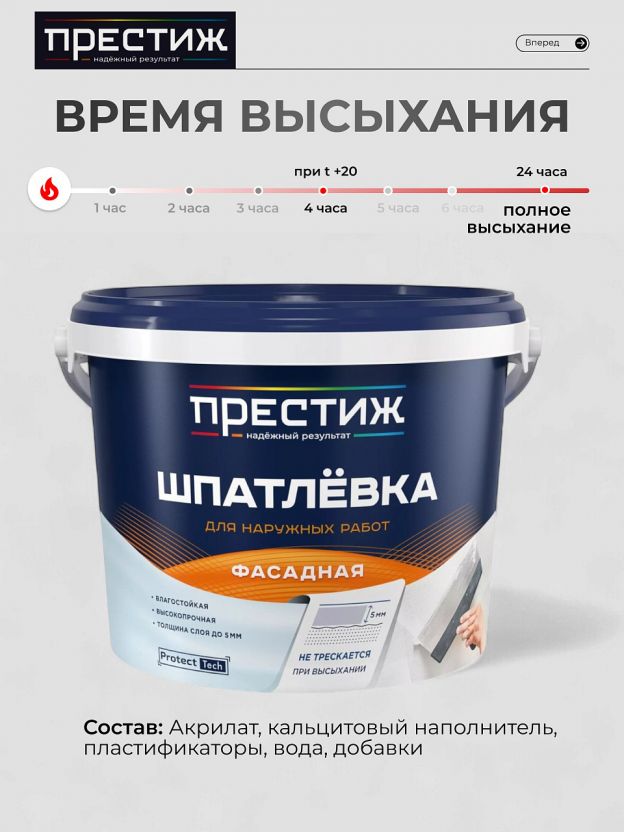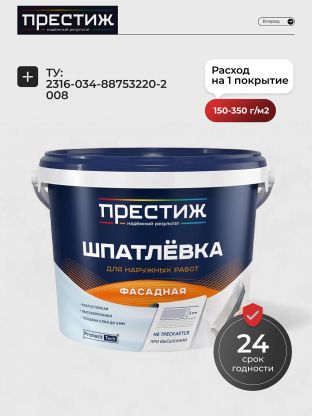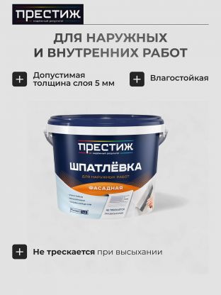 Шпатлевка Престиж, акриловая, универсальная, фасадная, для наружных работ, 3 кг