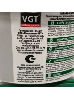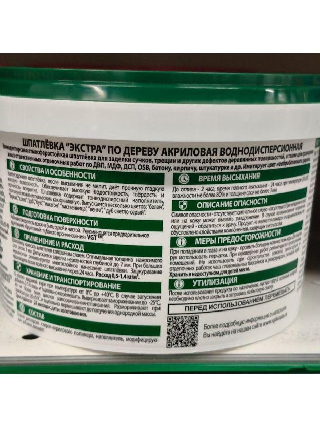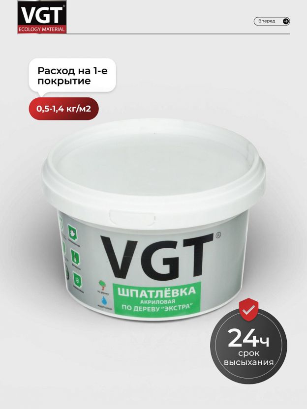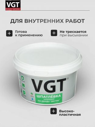 Шпатлевка VGT, Экстра, акриловая, по дереву, белая, 1 кг