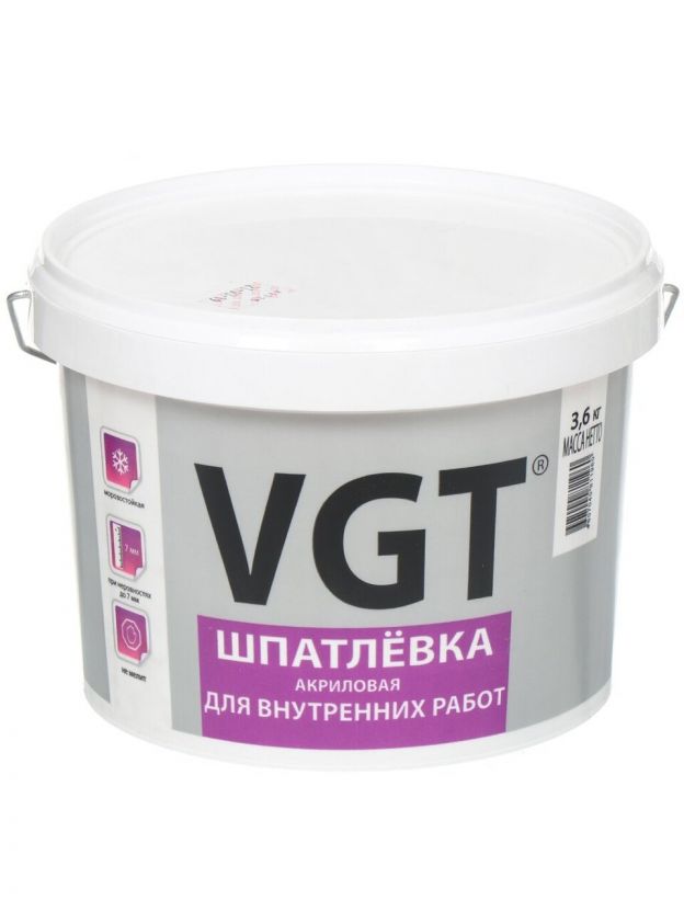 Шпатлевка VGT, акриловая, для внутренних работ, 3.6 кг