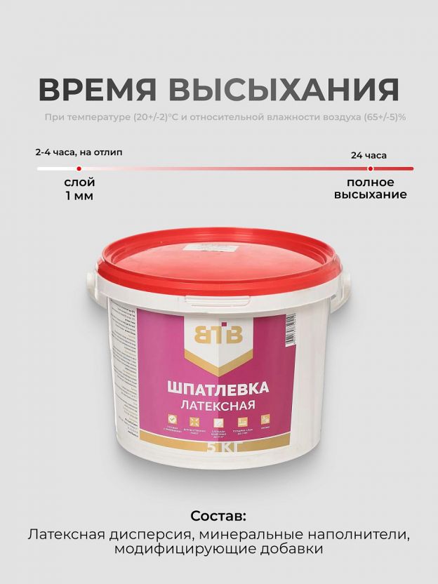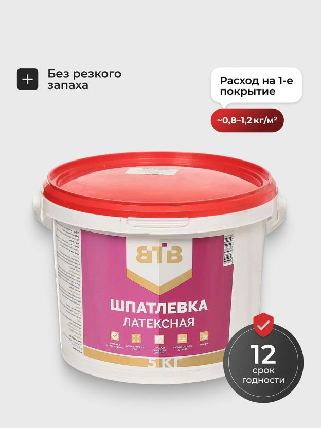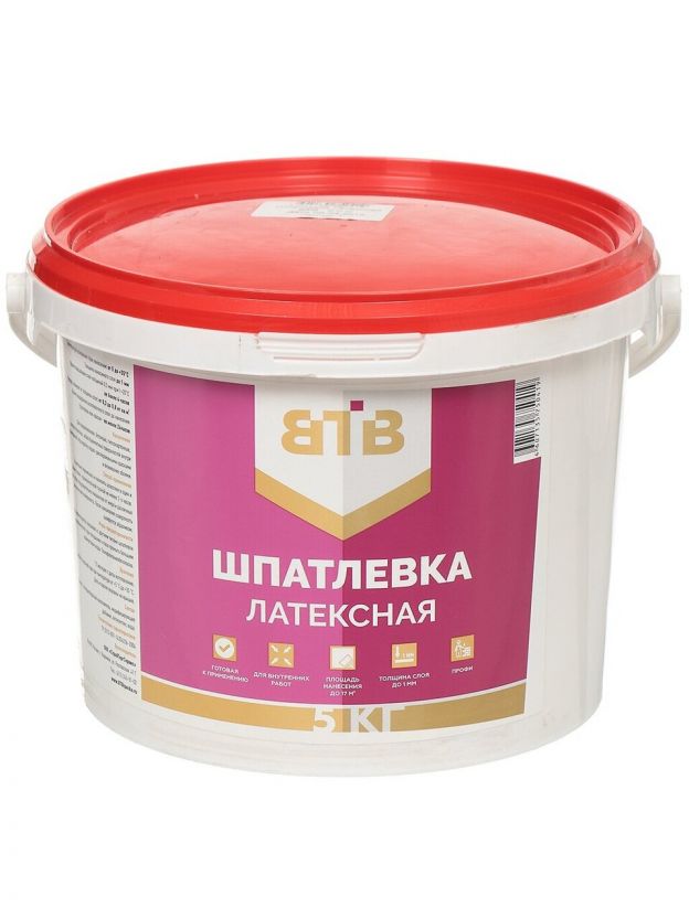 Шпатлевка ВТВ, латексная, для внутренних работ, белая, 5 кг