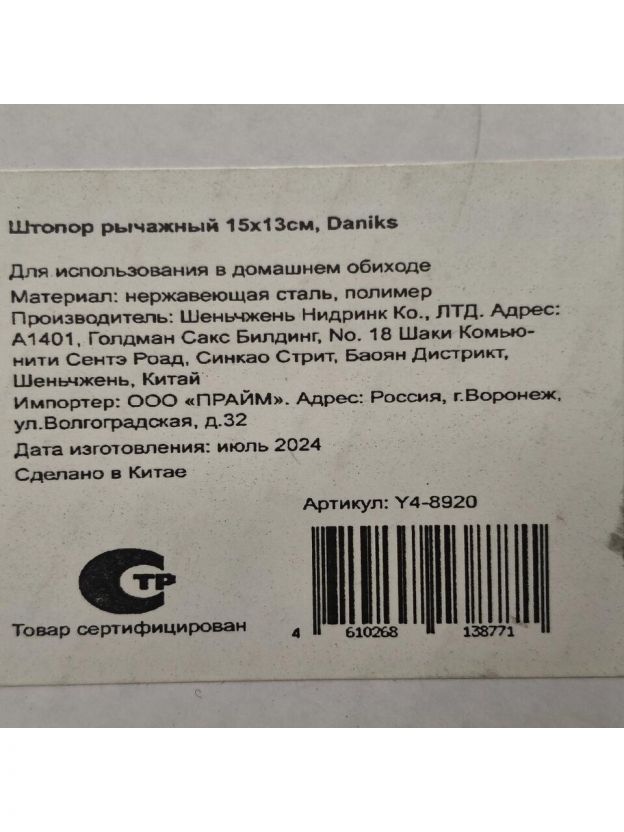 Не упустите возможность приобрести профессиональный рычажный штопор Y4-8920 и насладиться всеми его преимуществами. Этот инструмент станет отличным подарком для ценителей вина и настоящим украшением вашего домашнего бара.