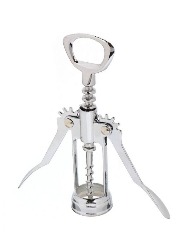 Штопор-бабочка _ любимая открывалка в коллективах, где присутствуют одни представительницы слабого пола. Спираль без проблем вкручивается в пробку, поднимая боковые рычаги. Легким нажатием они, словно крылья бабочки, одновременно опускаются вниз, извлекая при этом пробку из бутылки.