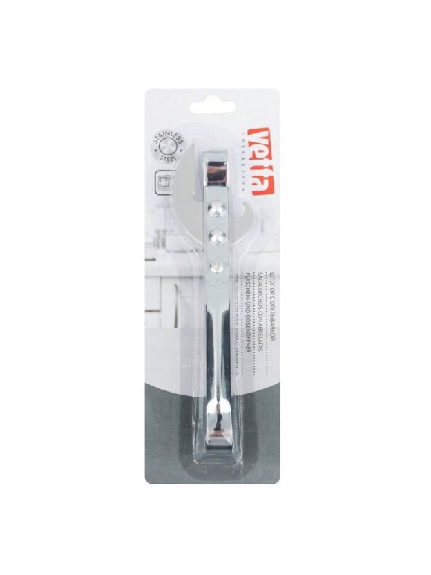 Штопор нержавеющая сталь, 17.9х6.4х2.8 см, с открывалкой для консервов, навеска, Vetta, 882-145