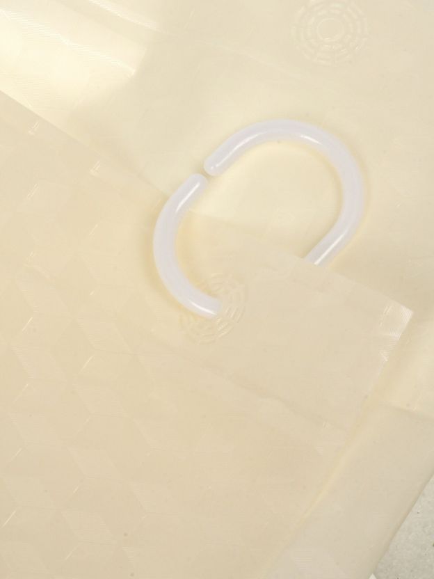Штора выполнена из экологичного PEVA, не содержит вредных примесей, крепится на стандартные кольца (входят в комплект).