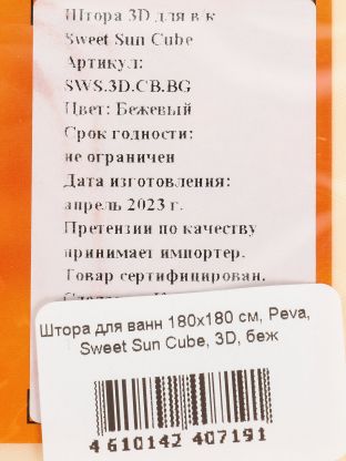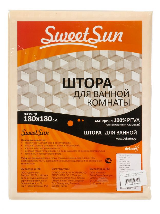 Штора для ванн 180х180 см Sweet Sun Cube: стильный 3D-дизайн, долговечный PEVA, надёжная защита от брызг — комфорт и чистота вашей ванной без лишних хлопот.