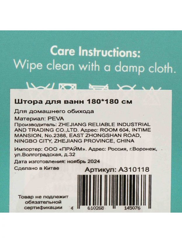 Штора для ванн 180х180 см Peva белого цвета — стильное и практичное решение для ванной комнаты. Современный материал Peva гарантирует водонепроницаемость и легкость ухода. Легко впишется в любой интерьер, добавив свежести и уюта. Размер 180х180 см обеспечивает полную защиту от брызг и комфорт во время водных процедур.