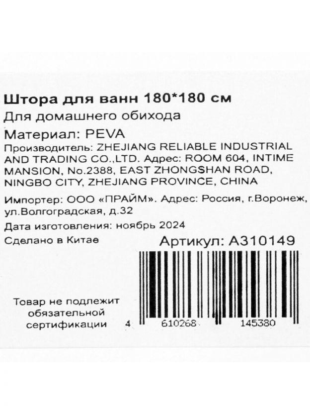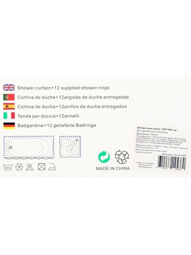 Штора для ванн 180х180 см, Peva, Naonao, серые цветы, A310149
