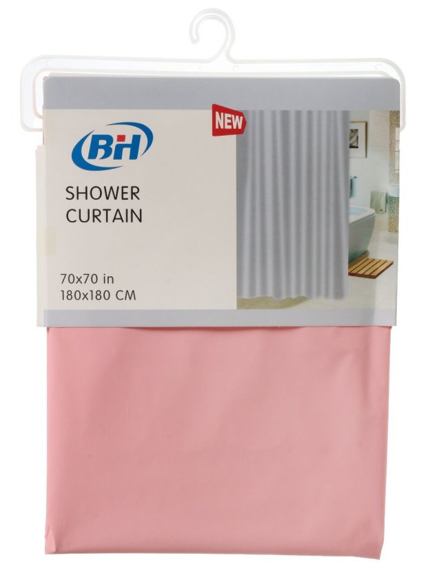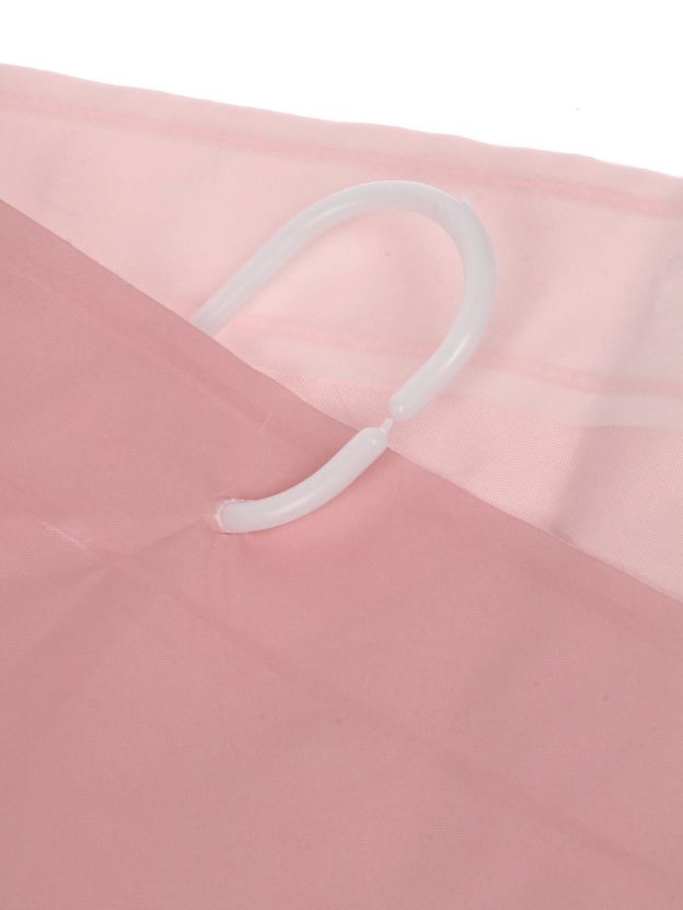 Штора изготовлена из PEVA — экологичного, гипоаллергенного материала без хлора. В отличие от ПВХ, PEVA легче, не желтеет, не впитывает запахи и быстро сохнет. Размер — 180х180 см, цвет — однотонный розовый.