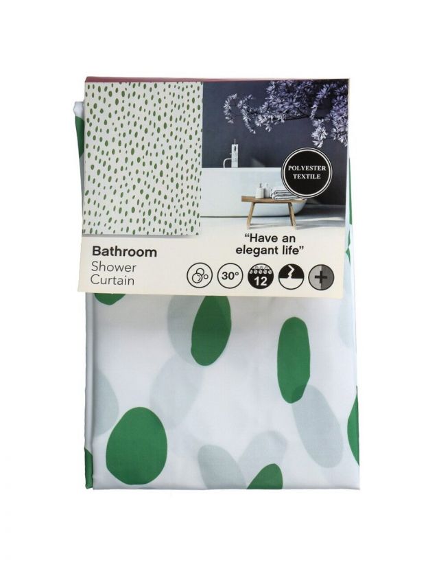 Штора для ванн 180х180 см, полиэстер, Белая в горошек, с кольцами, T2023-050