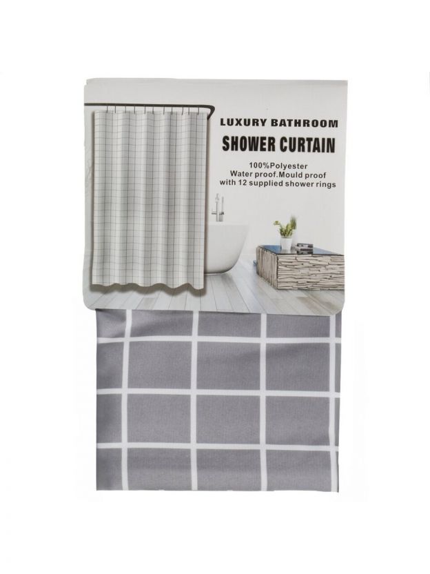 Штора для ванн 180х180 см, полиэстер, Клетка, серая, A310070