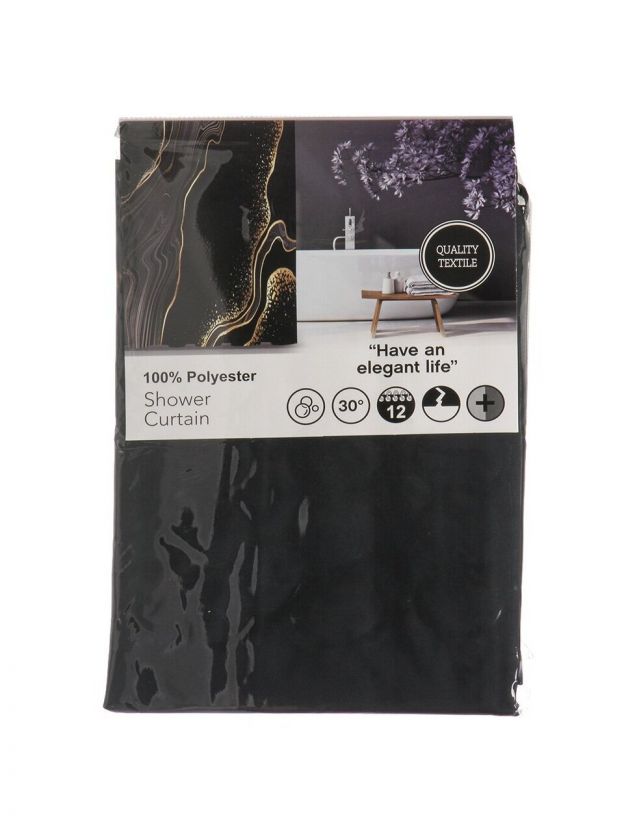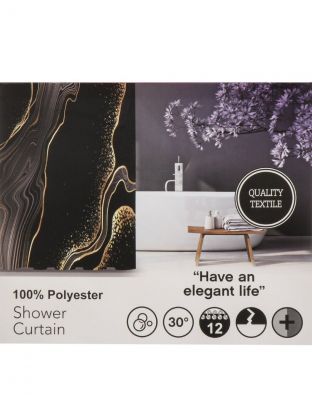 Штора для ванн 180х180 см, полиэстер, Мрамор, черная, A310041