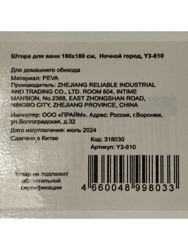 Штора для ванн 180х180 см, полиэстер, Ночной город, Y3-810