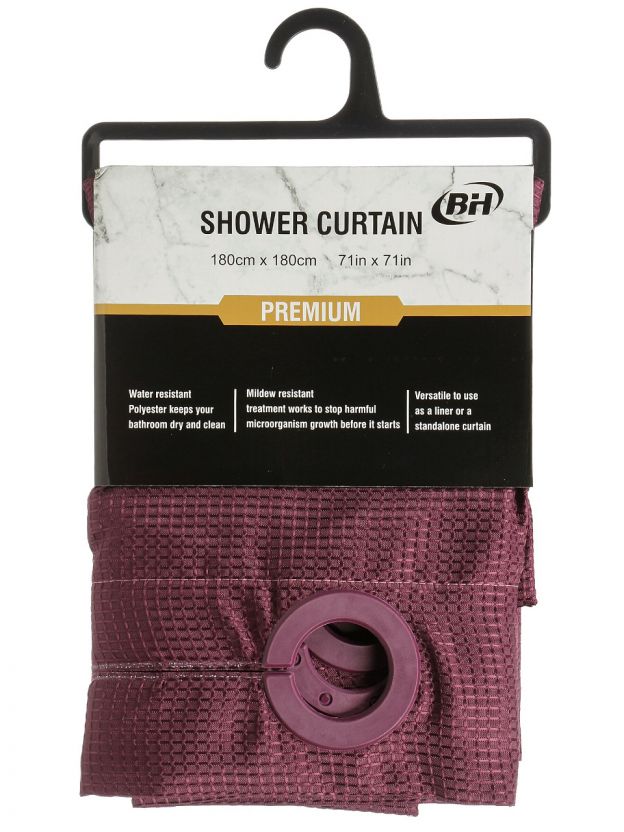 Штора для ванн 180х180 см, полиэстер, Однотонная бордовая, с люверсами, Y4-11159