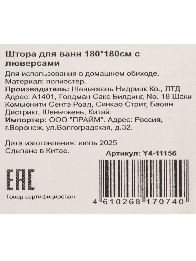 Штора для ванн 180х180 см, молочный полиэстер: универсальное решение для защиты от брызг и стильного обновления ванной. Практичность, долговечность, лёгкий уход.