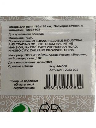 Штора для душа выполнена из высококачественного материала, который обеспечивает долговечность и устойчивость к воде и плесени. Она не только защищает вашу ванную комнату от брызг, но и придает ей стильный и современный вид. Штора легко моется и не требует особого ухода, что делает ее идеальным выбором для людей, которые хотят сохранить свою ванную комнату в идеальном состоянии.