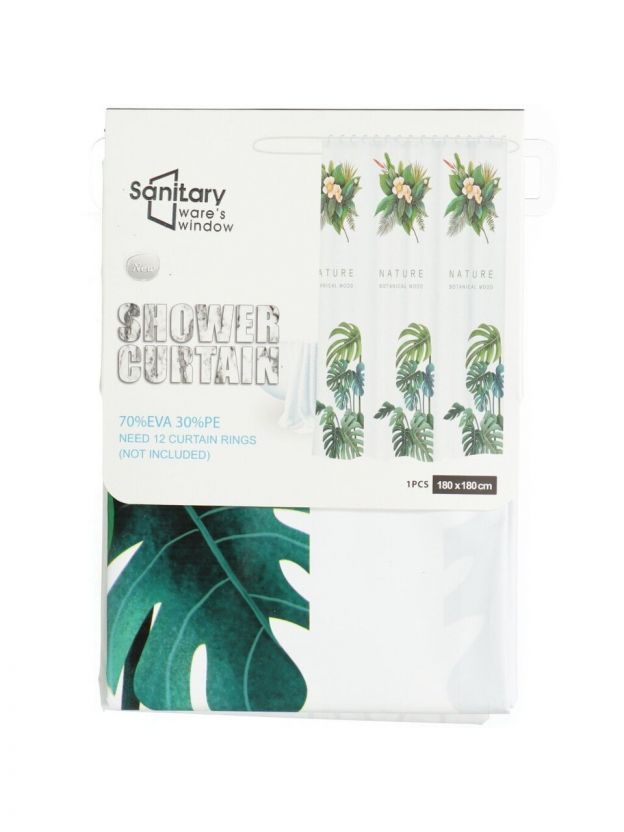 Штора для ванн 180х180 см, полиэстер, Тропический лист, с кольцами, Y3-567
