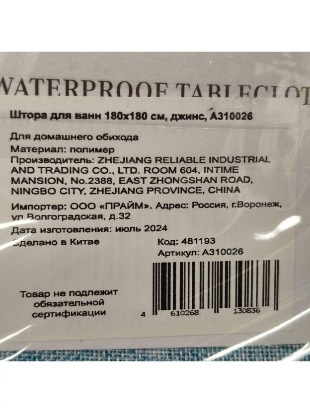 - Универсальный размер 180х180 см: подходит для стандартных и просторных душевых, лёгкий полиэстер