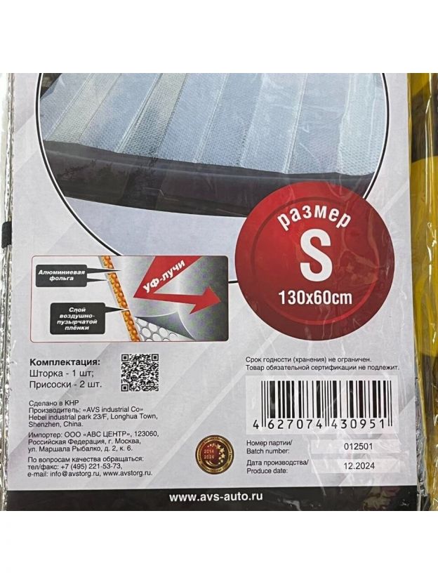 Шторка солнцезащитная на лобовое стекло, AVS, 107F, 60х130 см, 43095