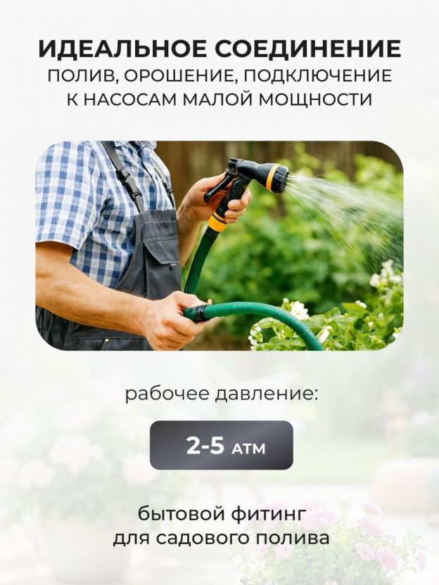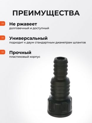 Ищете надежное соединение для садового шланга? Штуцер для шланга 1/2''-3/4'' от бренда Жук — идеальное решение для вашего сада! Изготовленный из прочного пластика, он обеспечивает надежное соединение и долговечность. Подходит для шлангов с диаметром 1/2'' и 3/4''. Внутренняя резьба типа "елочка" гарантирует плотное прилегание. Продукт от российского производителя, который знает, как сделать жизнь проще.