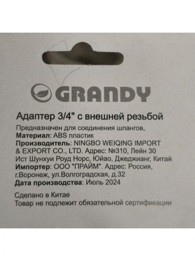 Штуцер на кран 3/4", быстросъемный, внешняя резьба, Grandy, JS-343