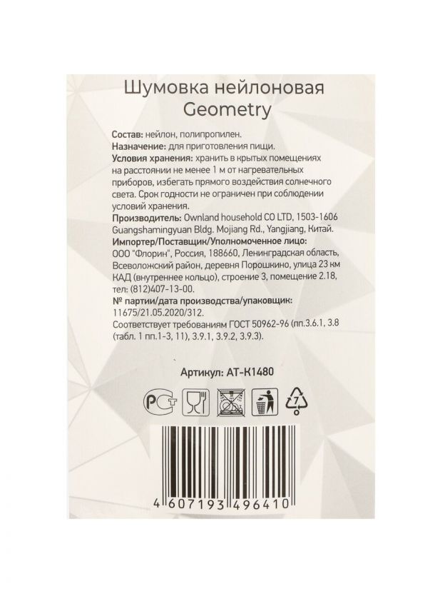 Шумовка нейлон, 36 см, навеска, Atmosphere, Geometry, AT-K1480