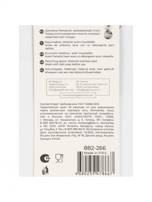 Шумовка нержавеющая сталь, 34х11 см, навеска, Satoshi, Альфа, 882-266
