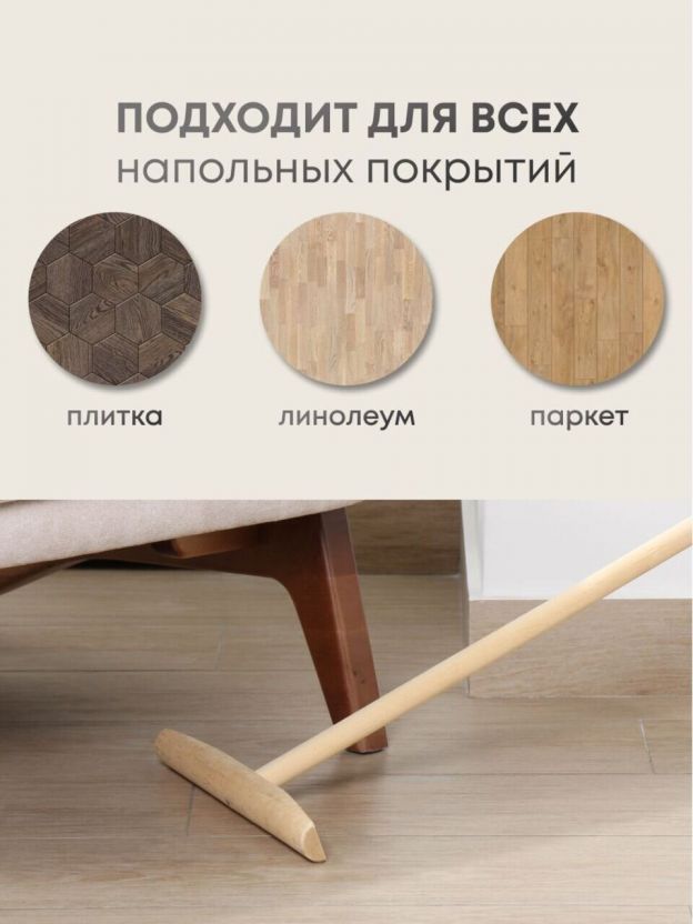 - Швабра изготовлена из натуральных материалов и является экологически чистым изделием, безопасным для здоровья.