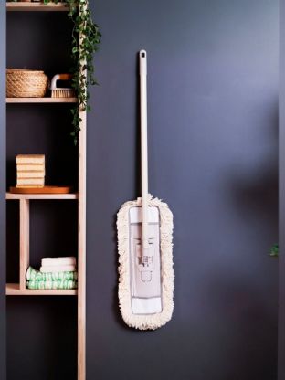 Большой размер насадки позволяет быстрее и эффективнее вымыть пол. Для использования "в сухом" виде - для сбора пыли и ворсинок или "во влажном" виде – для мытья пола. Насадка легко надевается на швабру и снимается.