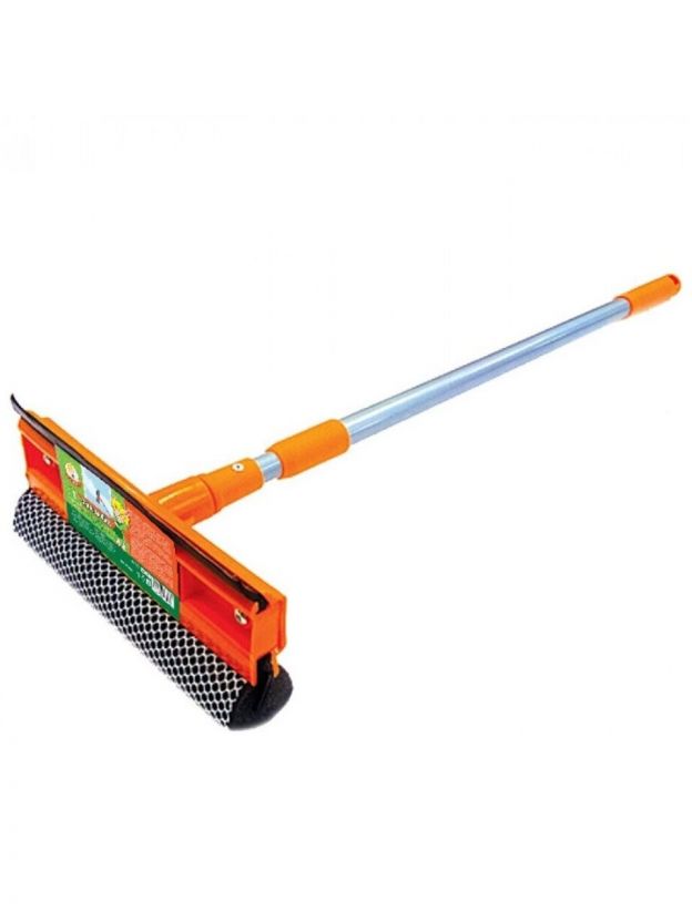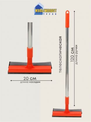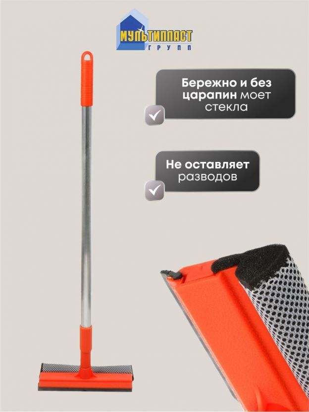 Швабра-окномойка Мультипласт Н99-WR017- удобное приспособление для мытья окон. Она снабжена скребком из качественной резины, не твердеющей при низких температурах, и губкой из плотного поролона, покрытого синтетической сеткой, стойкой к истиранию.