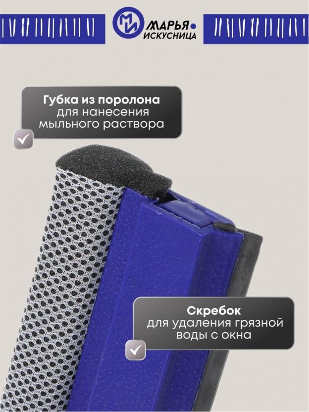 Окномойка - удобное приспособление для мытья окон. Она снабжена скребком из качественной резины, не твердеющей при низких температурах, и губкой из плотного поролона.
