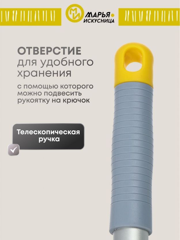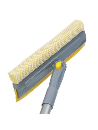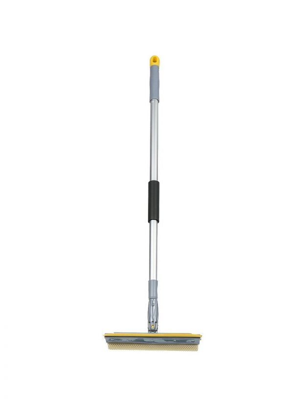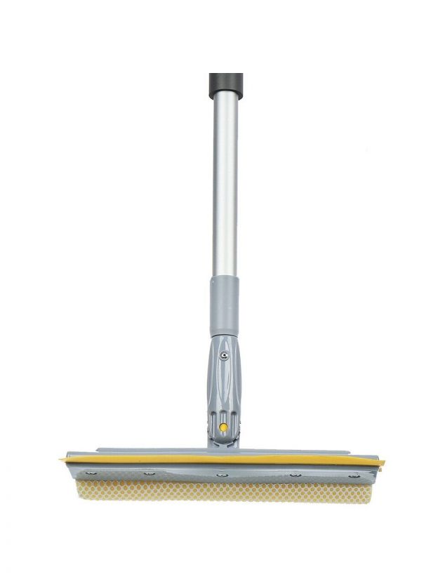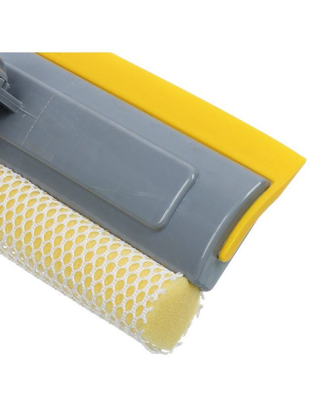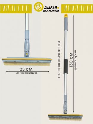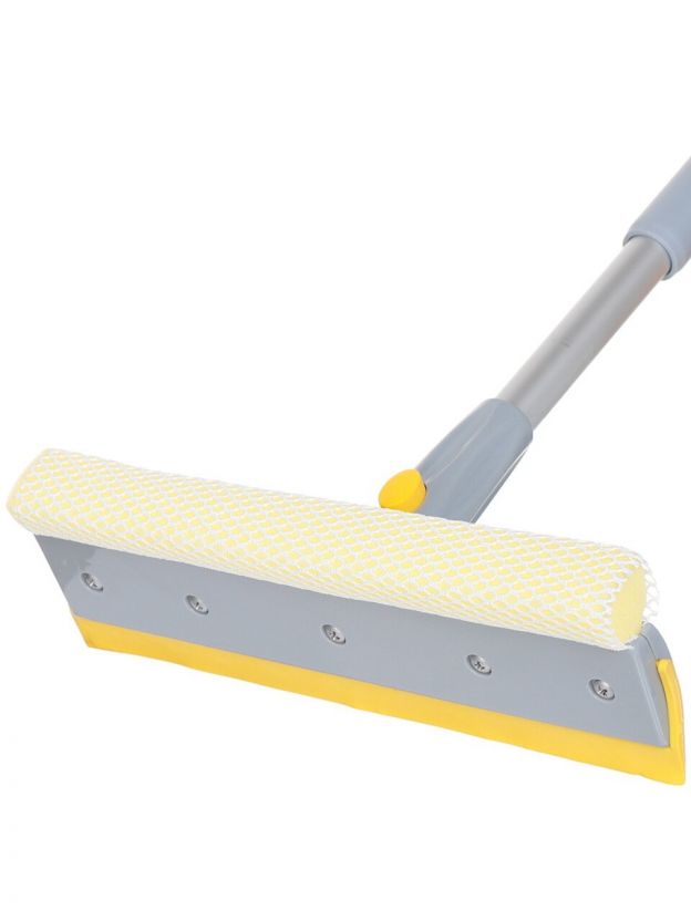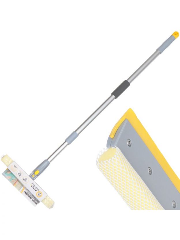 Швабра-окномойка губка, поролон-сетка, резина, 130х25 см, желтый, телескопическая ручка, Марья Искусница, KD-W08-10