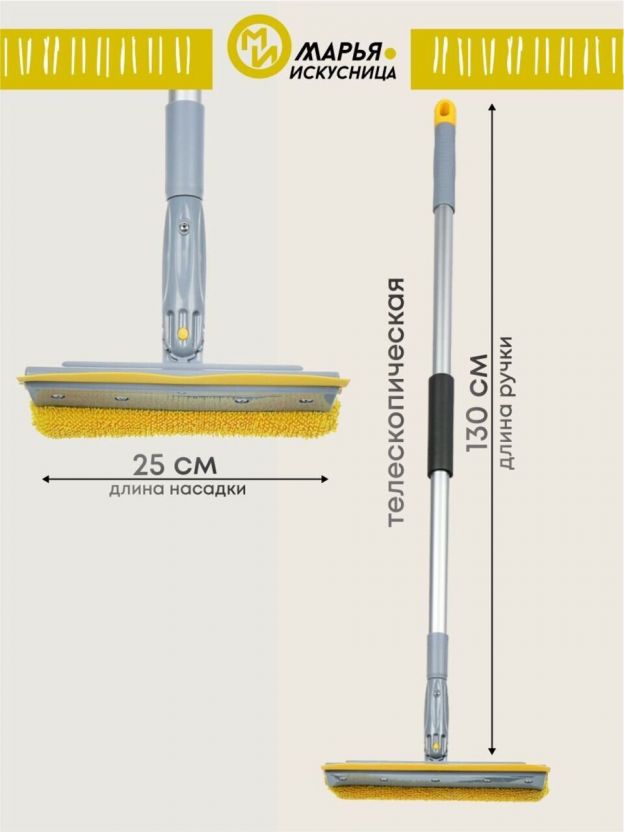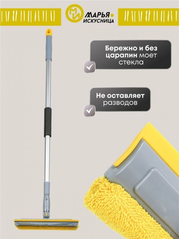 Швабра-окномойка микрофибра, резина, 130х25 см, желтая, телескопическая ручка, Марья Искусница, KD-W08M-10