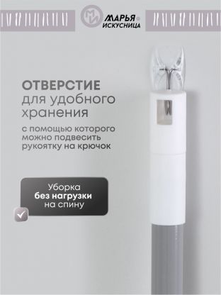 Швабра плоская, микрофибра, 120х38х13 см, серая, телескопическая ручка, светло-серая, Марья Искусница, YS-F11B