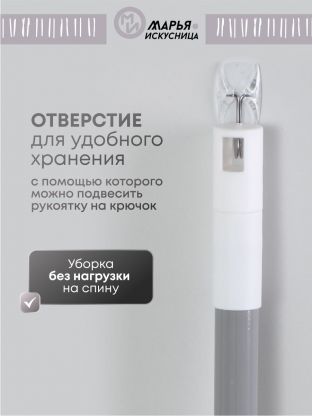 Швабра плоская, микрофибра, 120х41х12 см, серая, телескопическая ручка, светло-серая, Марья Искусница, FL1C