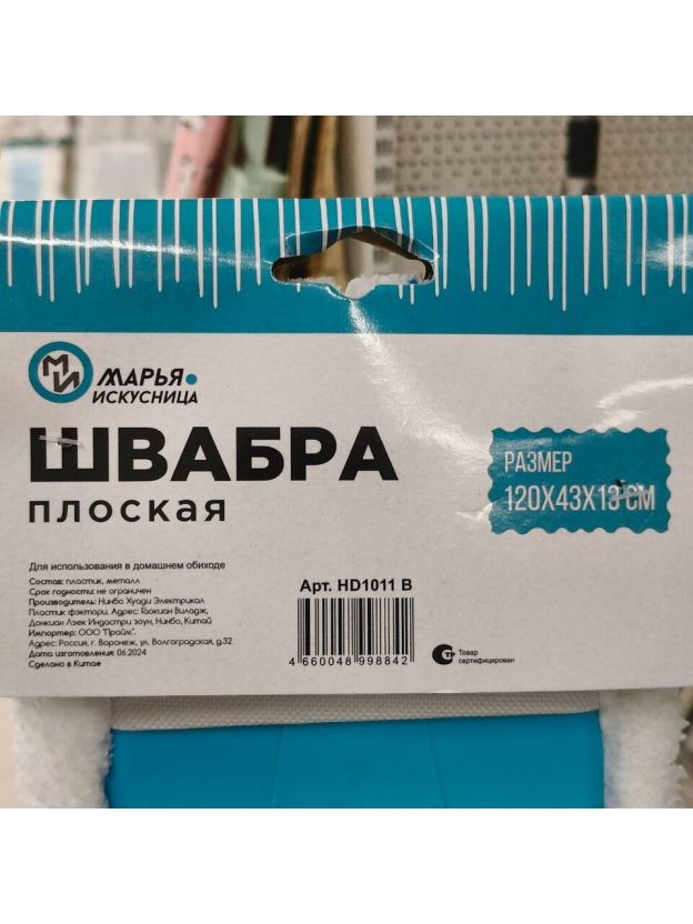 Швабра плоская, микрофибра, 120х43х13 см, белая, телескопическая ручка, Марья Искусница, HD1011 B