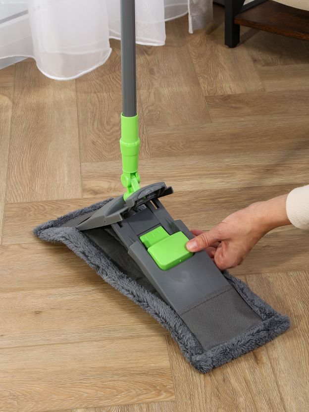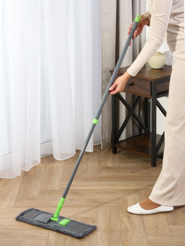 Выбирайте швабру с микрофиброй, если хотите быстро убрать пыль, волосы и шерсть домашних животных. Этот материал отлично впитывает влагу и не оставляет следов. В отличие от аналогов с губчатыми насадками, микрофибра легче отстирывается и служит дольше. Как использовать швабру с телескопической ручкой? Просто раздвиньте ручку до нужной длины и зафиксируйте — уборка станет удобнее и быстрее.