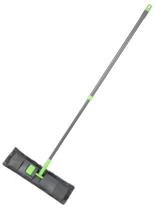 Длина телескопической ручки — 130 см, размер насадки — 42x12 см. Этого достаточно для быстрой уборки даже просторных комнат или офисов.
