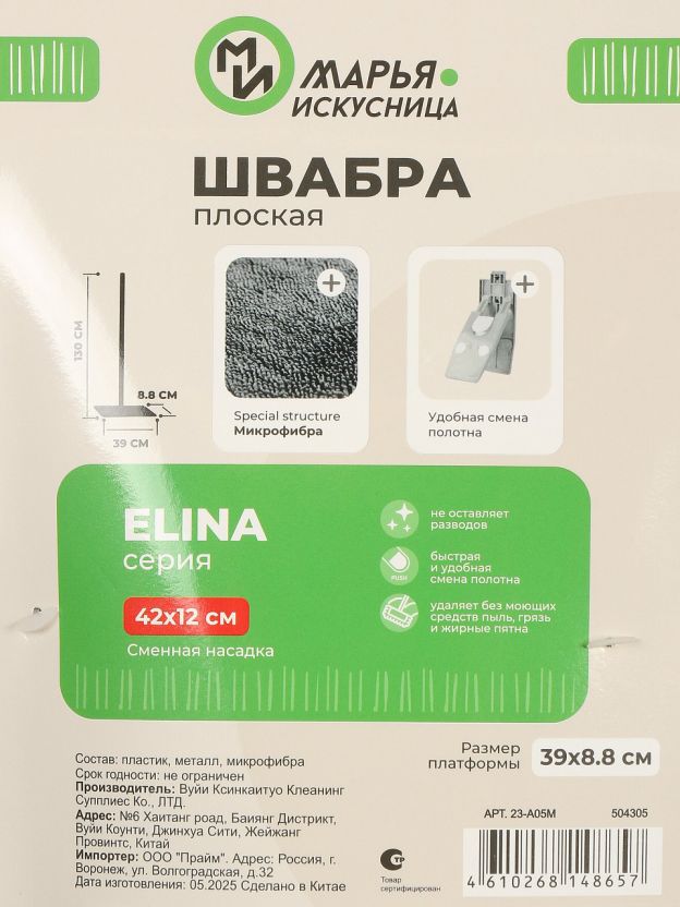 Швабра Мария Искусница с телескопической ручкой — это современное решение для быстрой и эффективной уборки. Плоская насадка из микрофибры обеспечивает глубокое очищение без царапин и разводов, а также подходит для сухой и влажной уборки. Если вы ищете, какую швабру выбрать для кафеля или как выбрать швабру для стен, обратите внимание на конструкцию флаундер: она легко огибает углы и попадает в самые труднодоступные места.