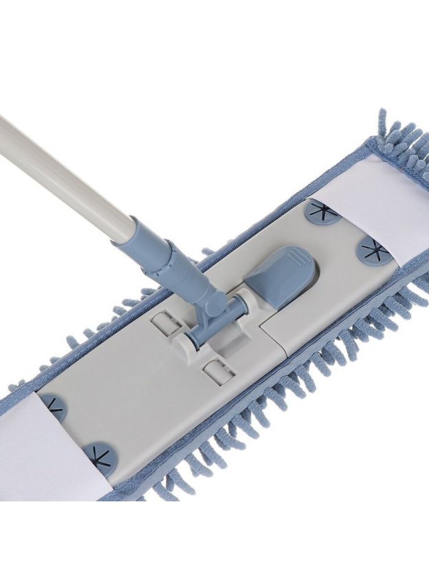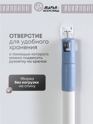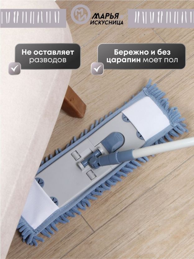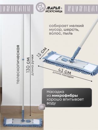 Швабра плоская, микрофибра, 130х43х13 см, синяя, телескопическая ручка, серо-голубая, Марья Искусница, HD1009A-17-4021-427