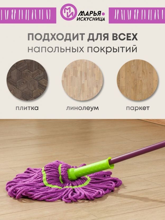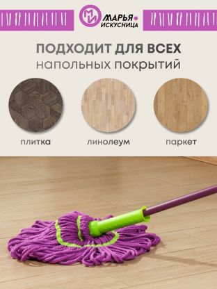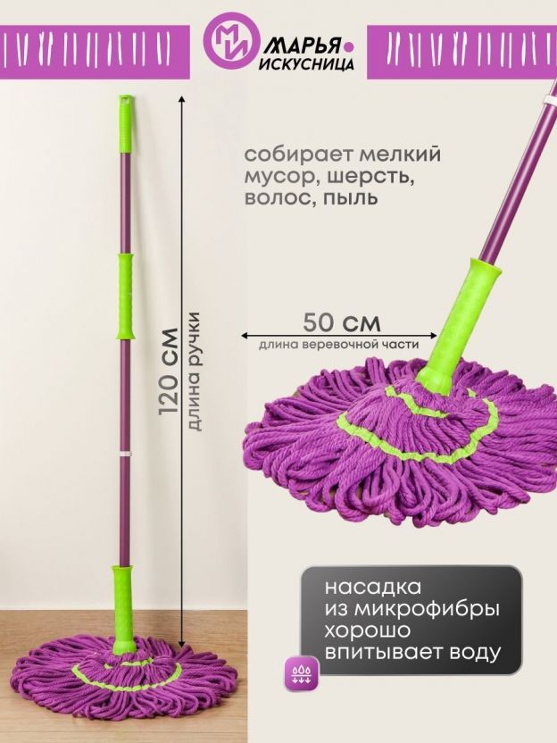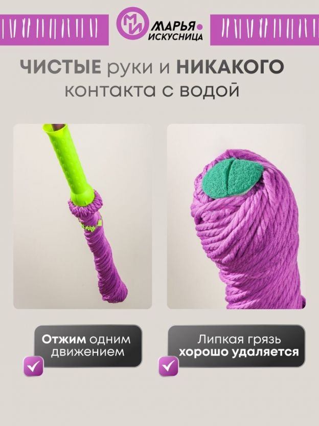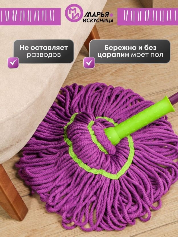 Швабра веревочная, микрофибра, 120 см, фиолетовый, с отжимом, фиолетовая, Марья Искусница, KD-4829