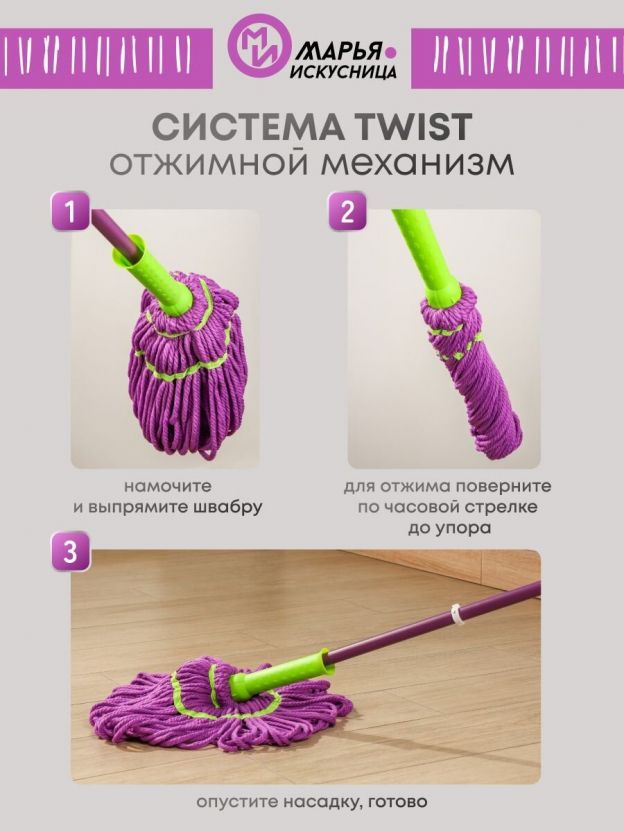 Швабры-флеттер с насадкой из микрофибры подходят для влажной уборки и мытья полов из любых материалов, идеальны для ухода за натуральными напольными покрытиями: паркетная доска, пробковые полы, сизаль. Не оставляют разводов и ворсинок. Позволяют сократить время сухой и влажной уборки полов. Прекрасно справляются с уборкой в труднодоступных местах: под шкафами, диванами и т.п. В комплектацию входит швабра с насадкой. Товар поставляется в полной комплектации, приобретение отдельных элементов не представляется возможным.