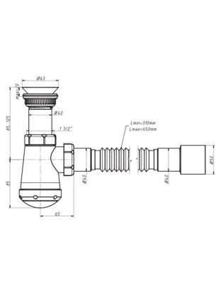 - Длина гибкой трубы: 310–650 мм;