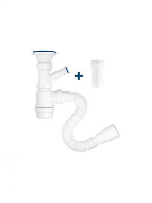 Сифон для мойки, 1 1/2"х40, с выпуском, 2 в 1, (выпуск с нержавеющей решеткой, с отводом для стиральной машины), с гибкой трубой 40х40/50, MasterProf, ИС.110678