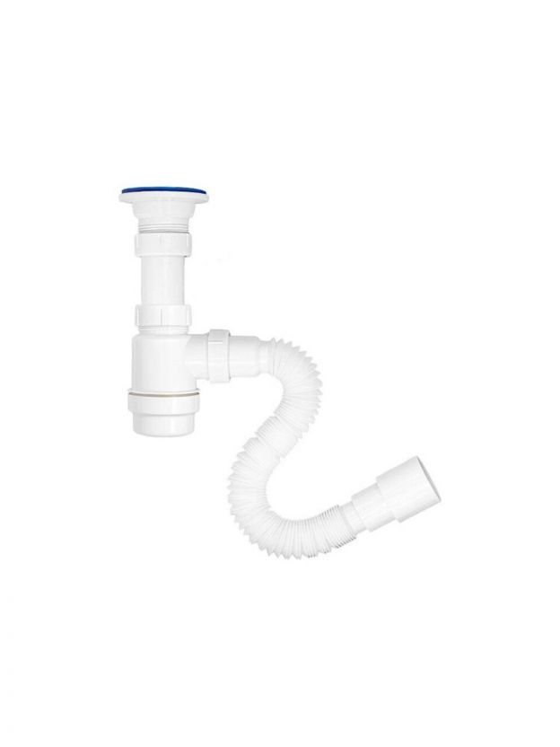 Сифон со смещенным корпусом был специально разработан для максимально эффективного использования пространства под кухонной мойкой. Когда мойка установлена в тумбе или кухонном шкафу, этот сифон позволяет полностью задействовать всё доступное пространство, не создавая помех.