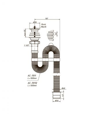 Сифон для мойки, 1000 мм, 1" 1/2х40/50, полипропилен, с выпуском, Orio, АС-7011